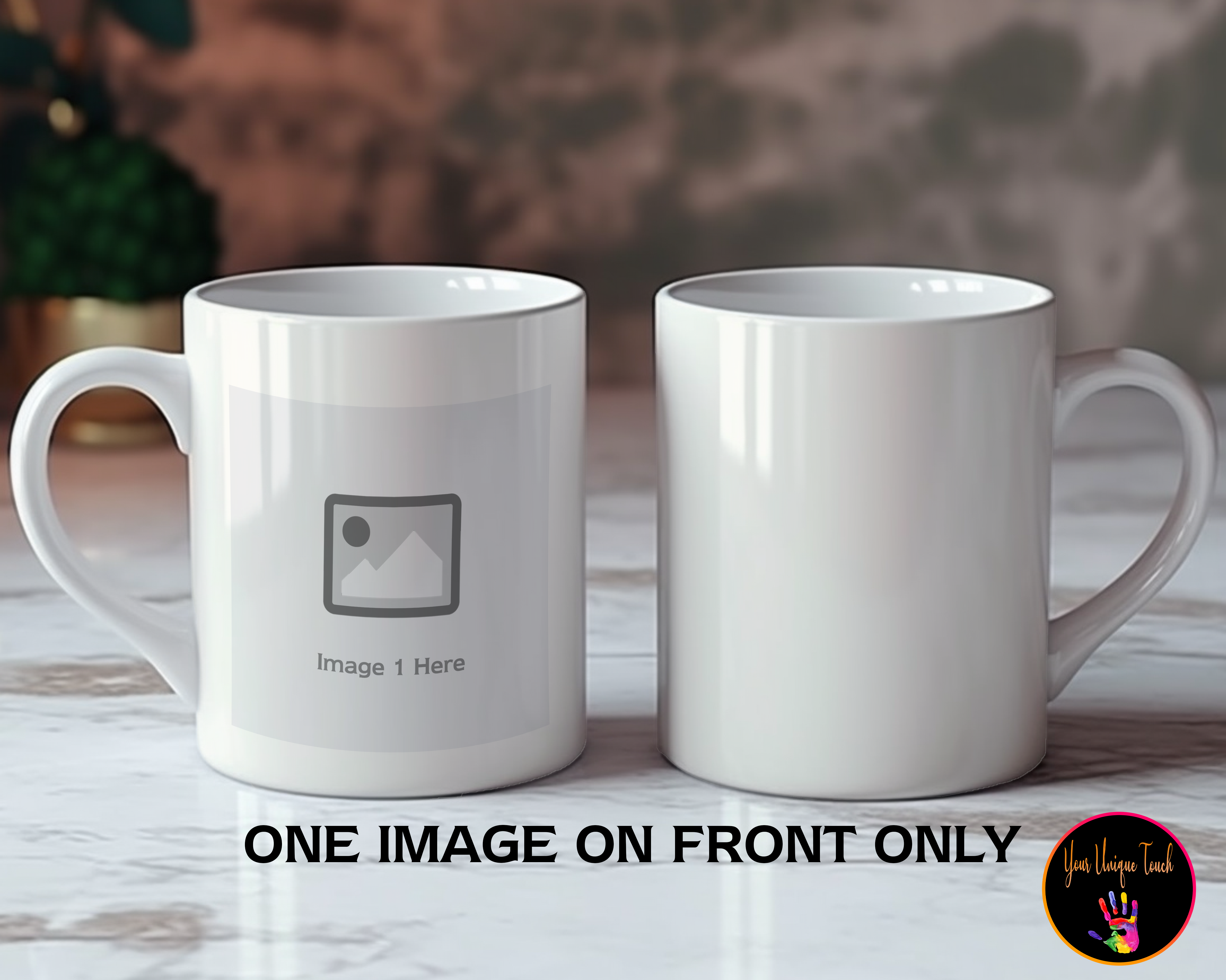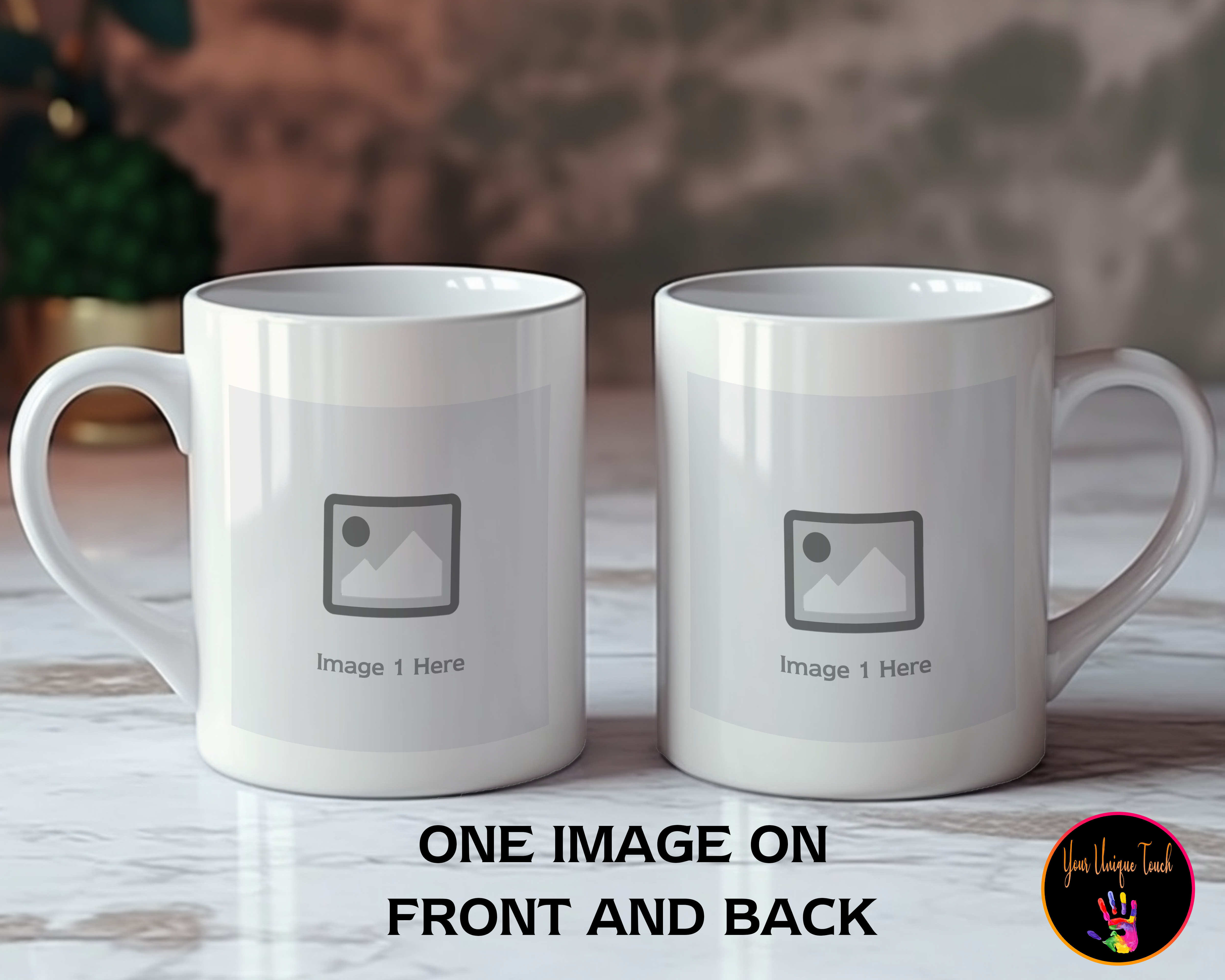 Your mug can be designed with up to two photo, images or logo. These logos will be placed on front and back of the mug.